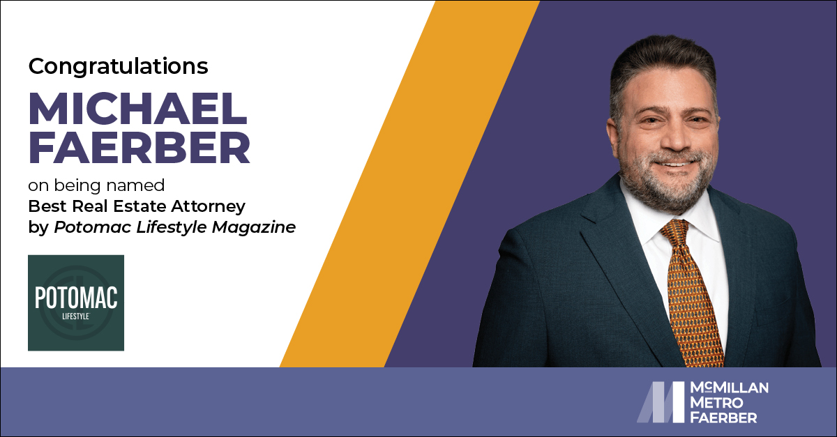 McMillan Metro Faerber is proud to announce that Michael Faerber has been named “Best Real Estate Attorney” in Potomac Lifestyle Magazine‘s “The Best Businesses in Potomac 2026.”